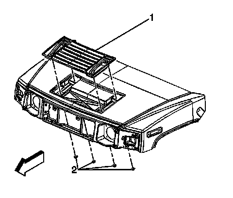 3. Remove the 4 nuts (2) retaining the grille to the hood.