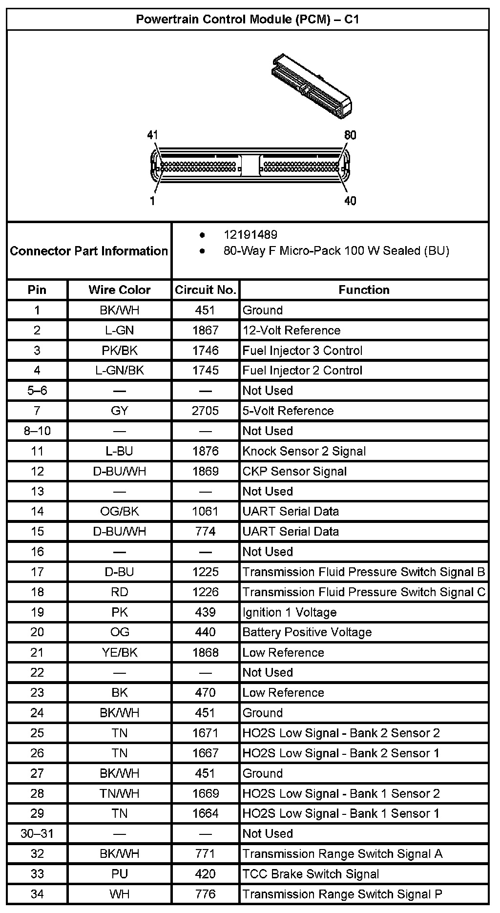 Powertrain Control Module (PCM) - C1 (Part 2):