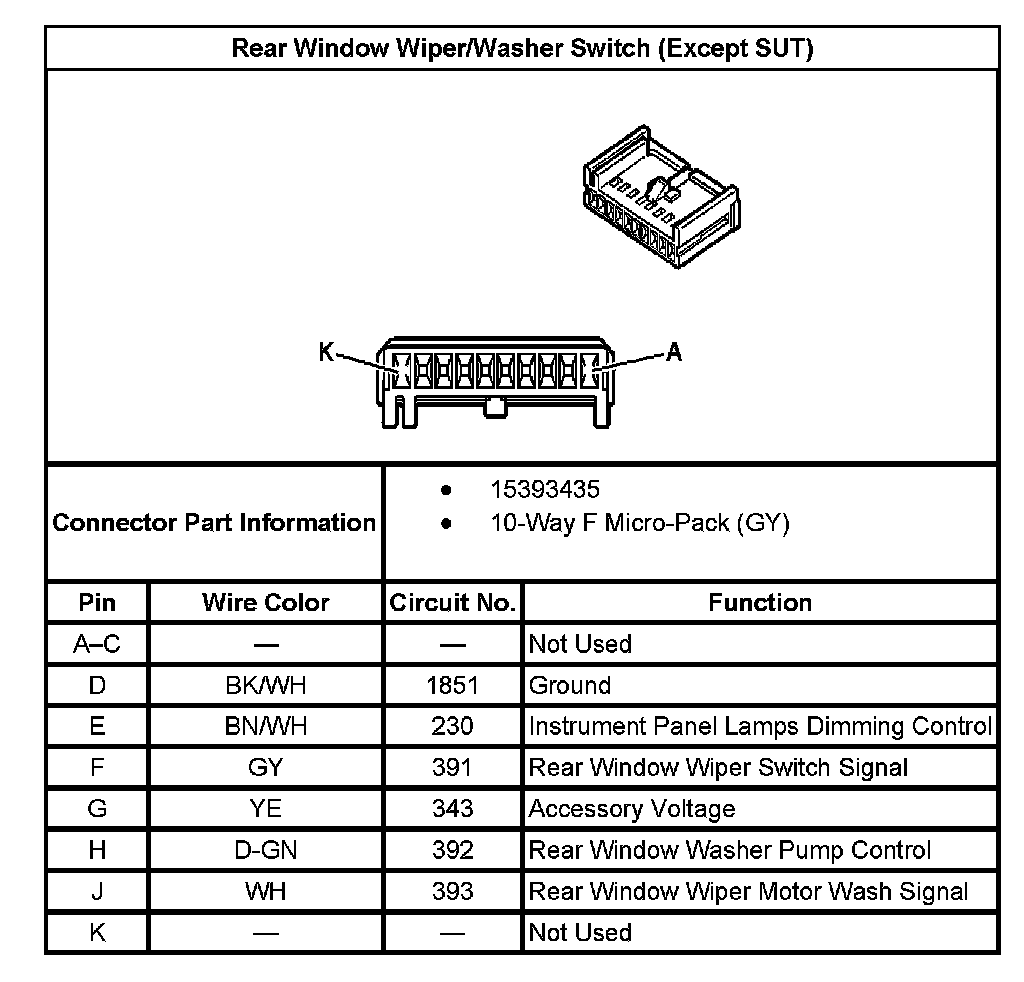 Rear Window Wiper/Washer Switch (Except SUT):