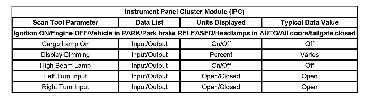 Instrument Panel Cluster Module (IPC):