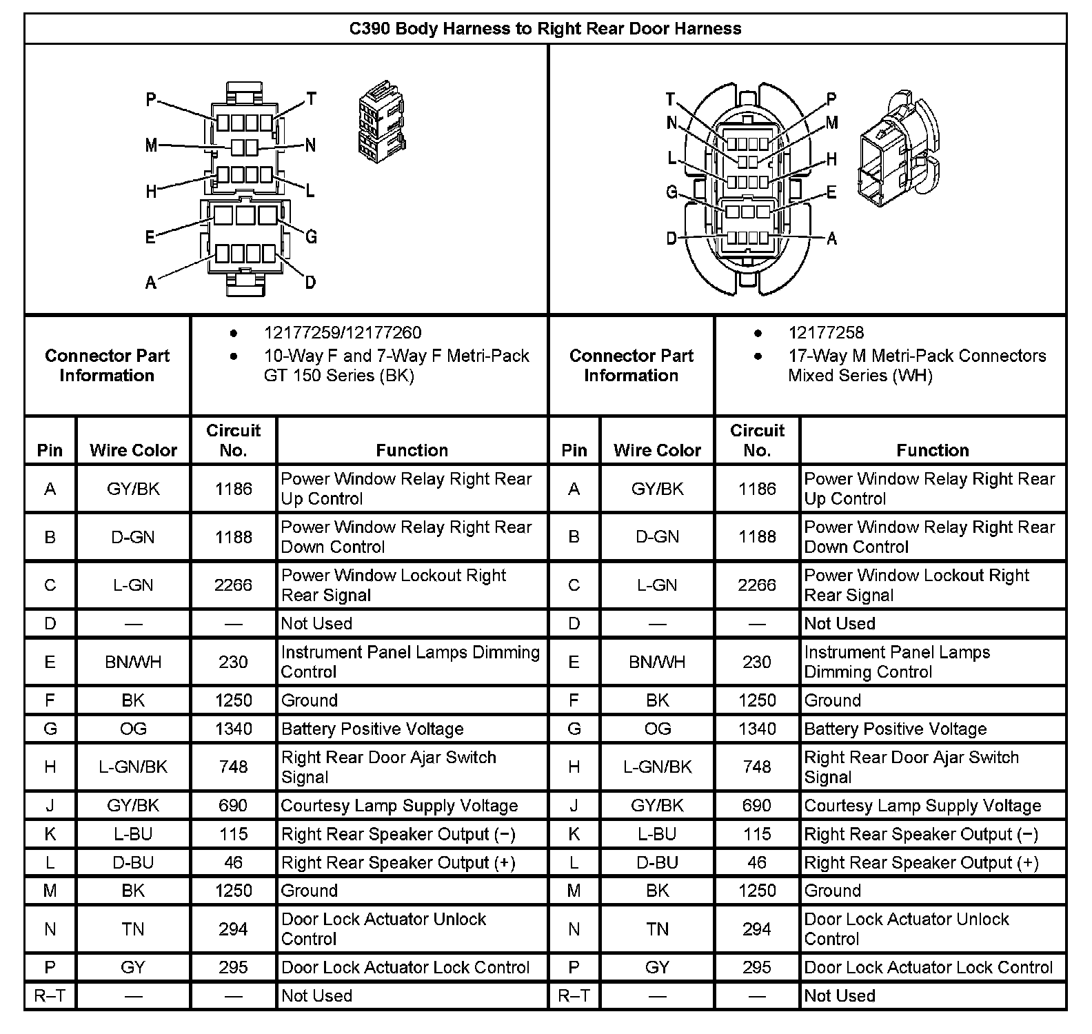 C390 Body Harness To Right Rear Door Harness: