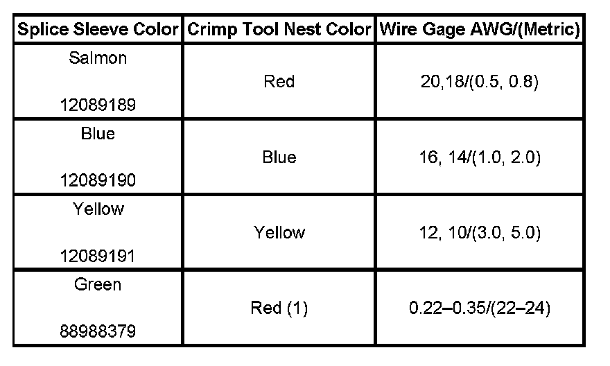 5. Select the proper duraseal splice sleeve (2) and the required crimp nest tool. Refer to the Crimp and Seal Splice Table.