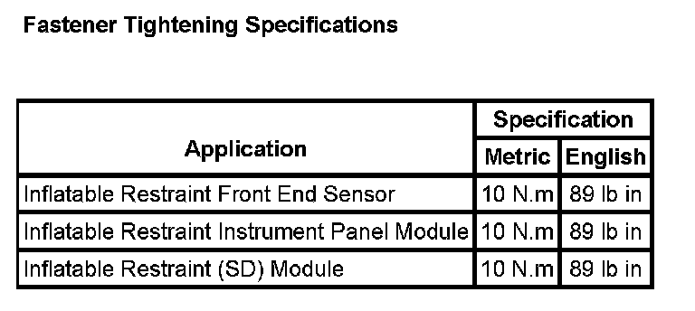 Fastener Tightening Specifications: