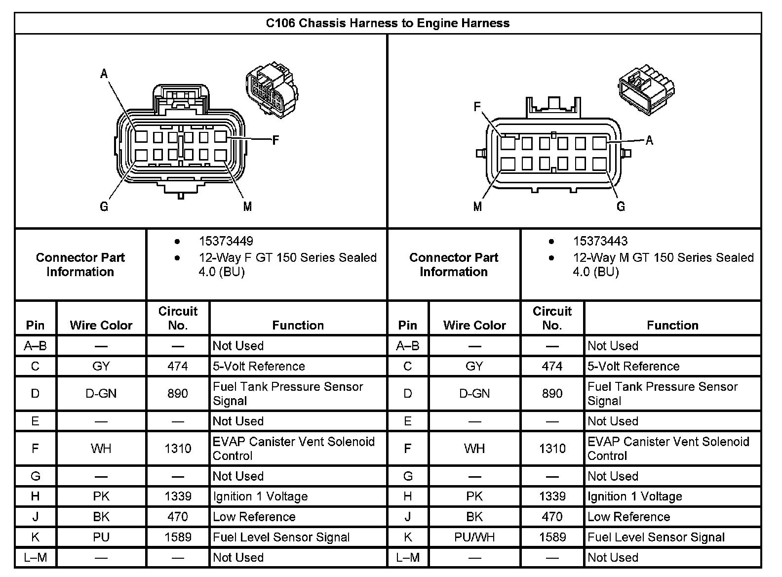 C106 Chassis Harness To Engine Harness: