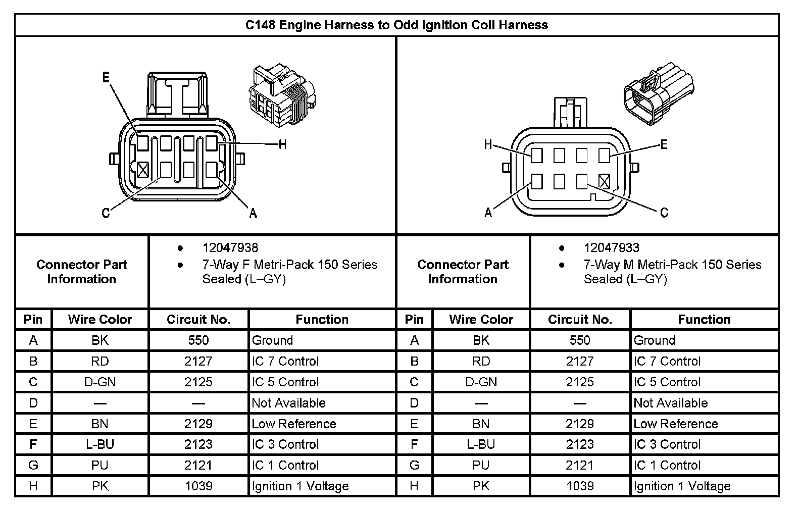 C148 Engine Harness To Odd Ignition Coil Harness: