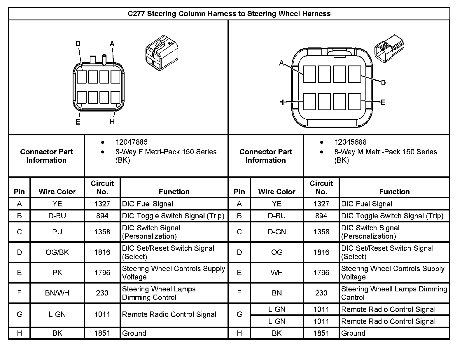 C277 Steering Column Harness To Steering Wheel Harness: