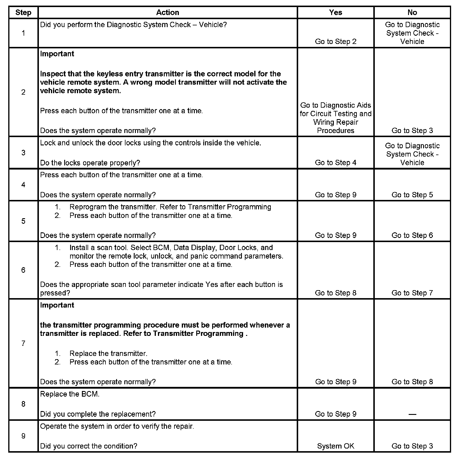 Keyless Entry System Inoperative