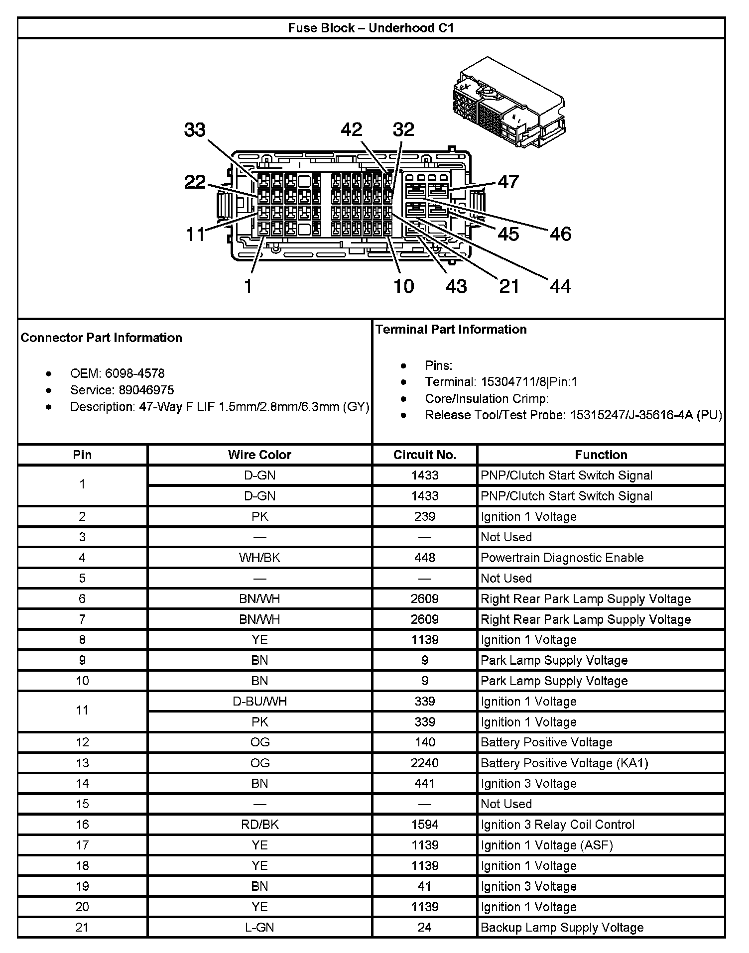 Fuse Block - Underhood C1 (Part 3):