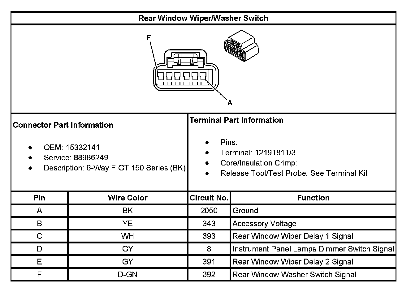 Rear Window Wiper/Washer Switch: