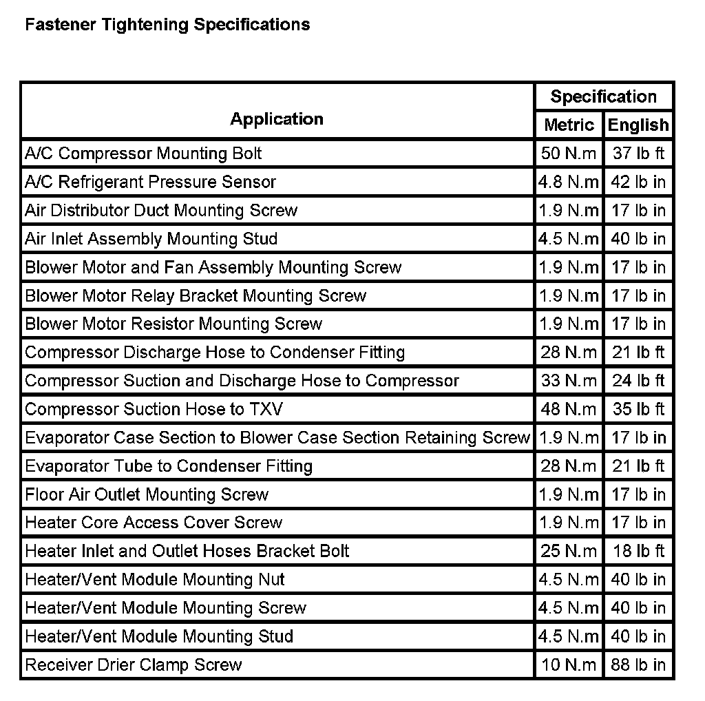 Fastener Tightening Specifications: