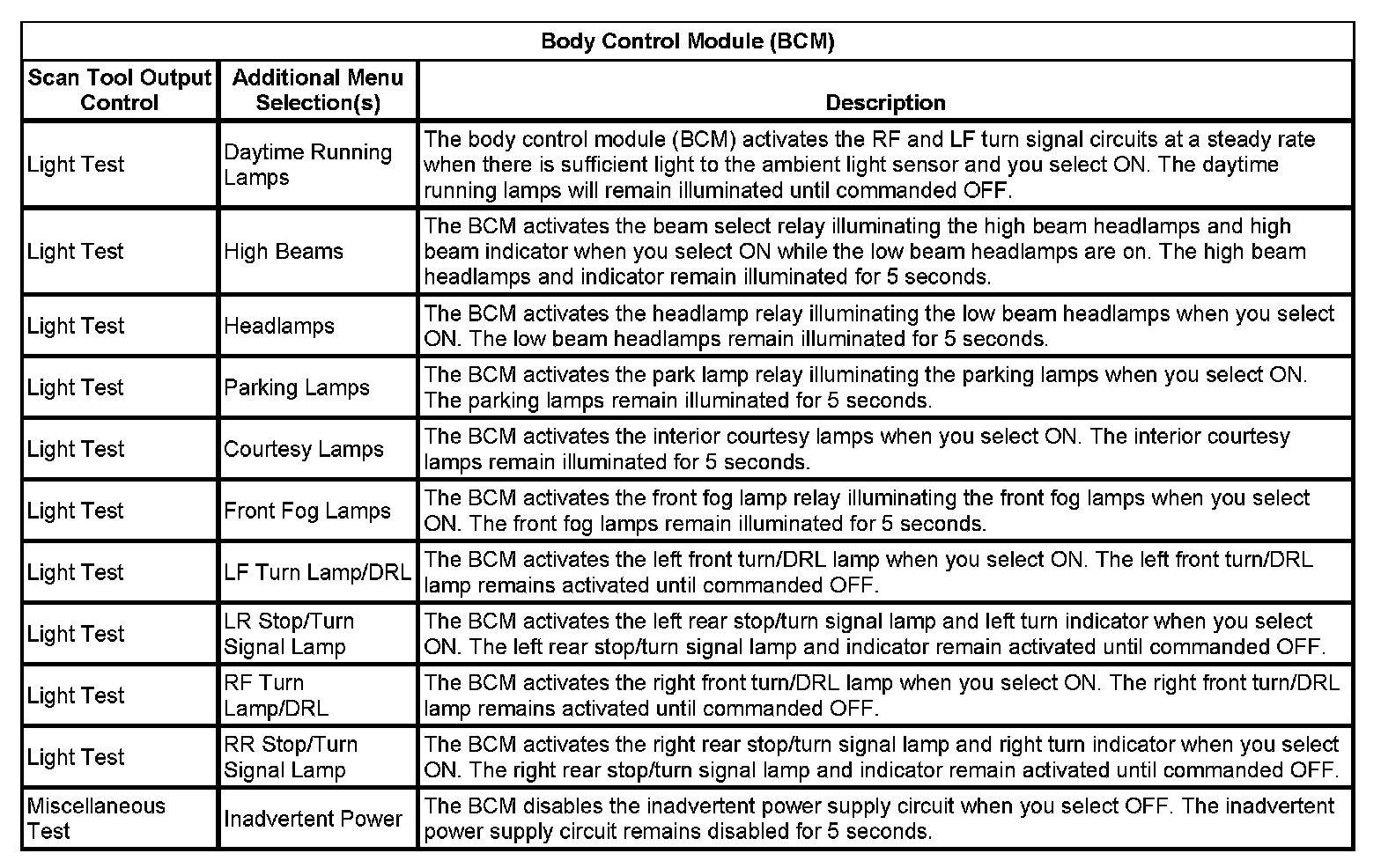 Body Control Module (BCM):