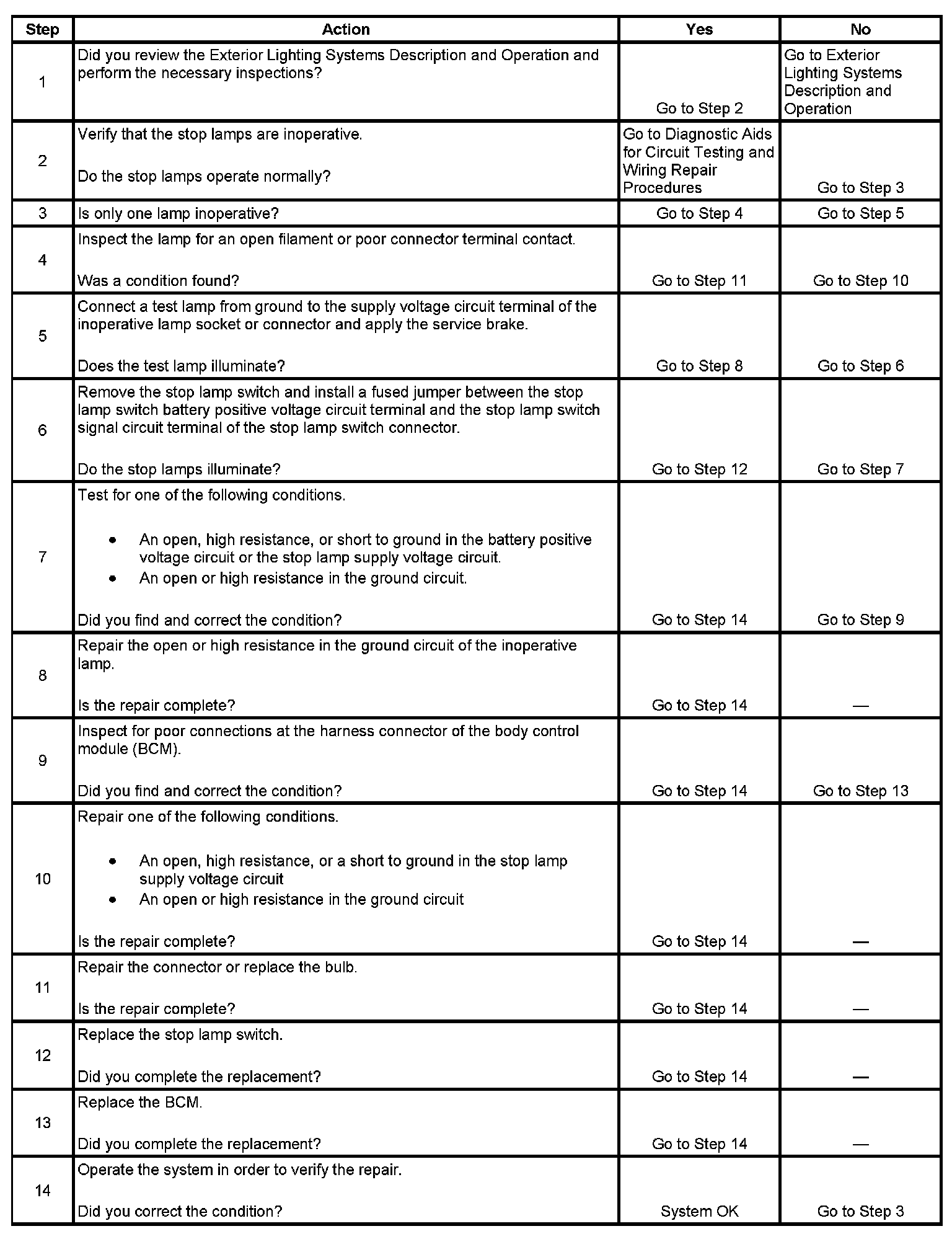 Stop Lamps Inoperative