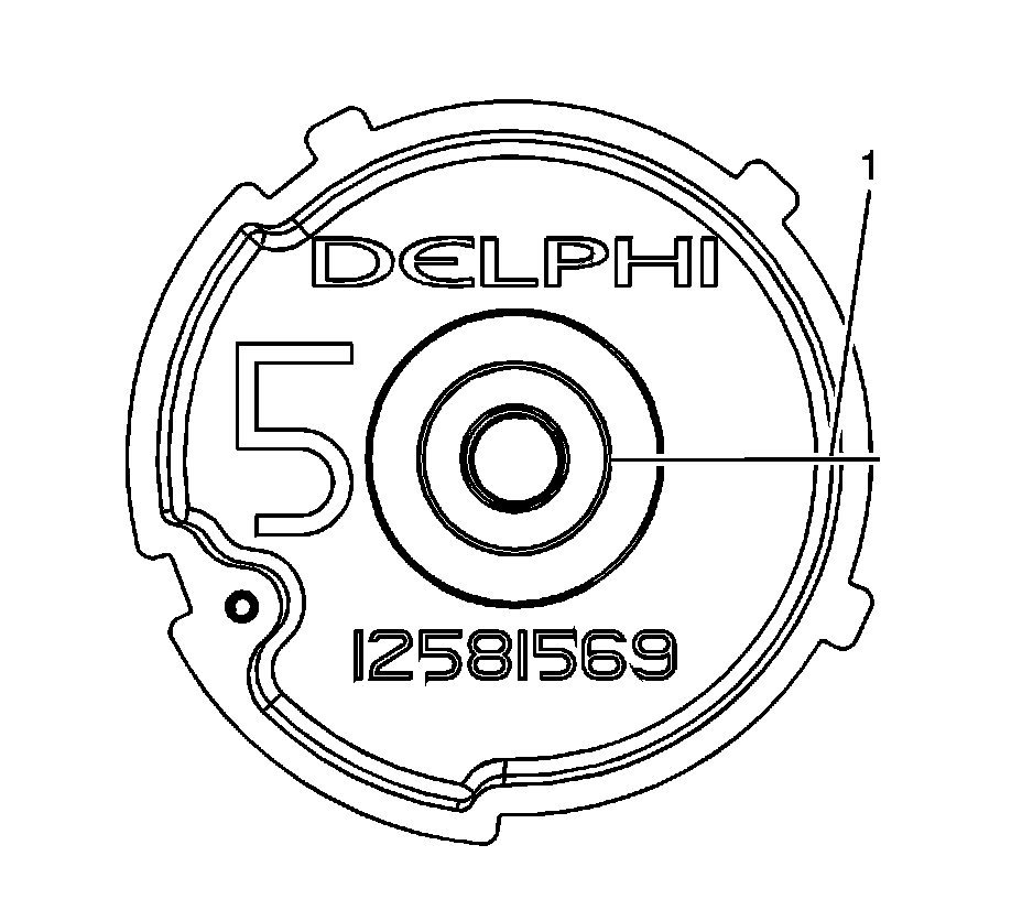 2. Scribe or draw a line (1) on the camshaft position actuator outer ring face, in the full advanced position. With the engine at TDC on #1 cylinder, the wording should be level.