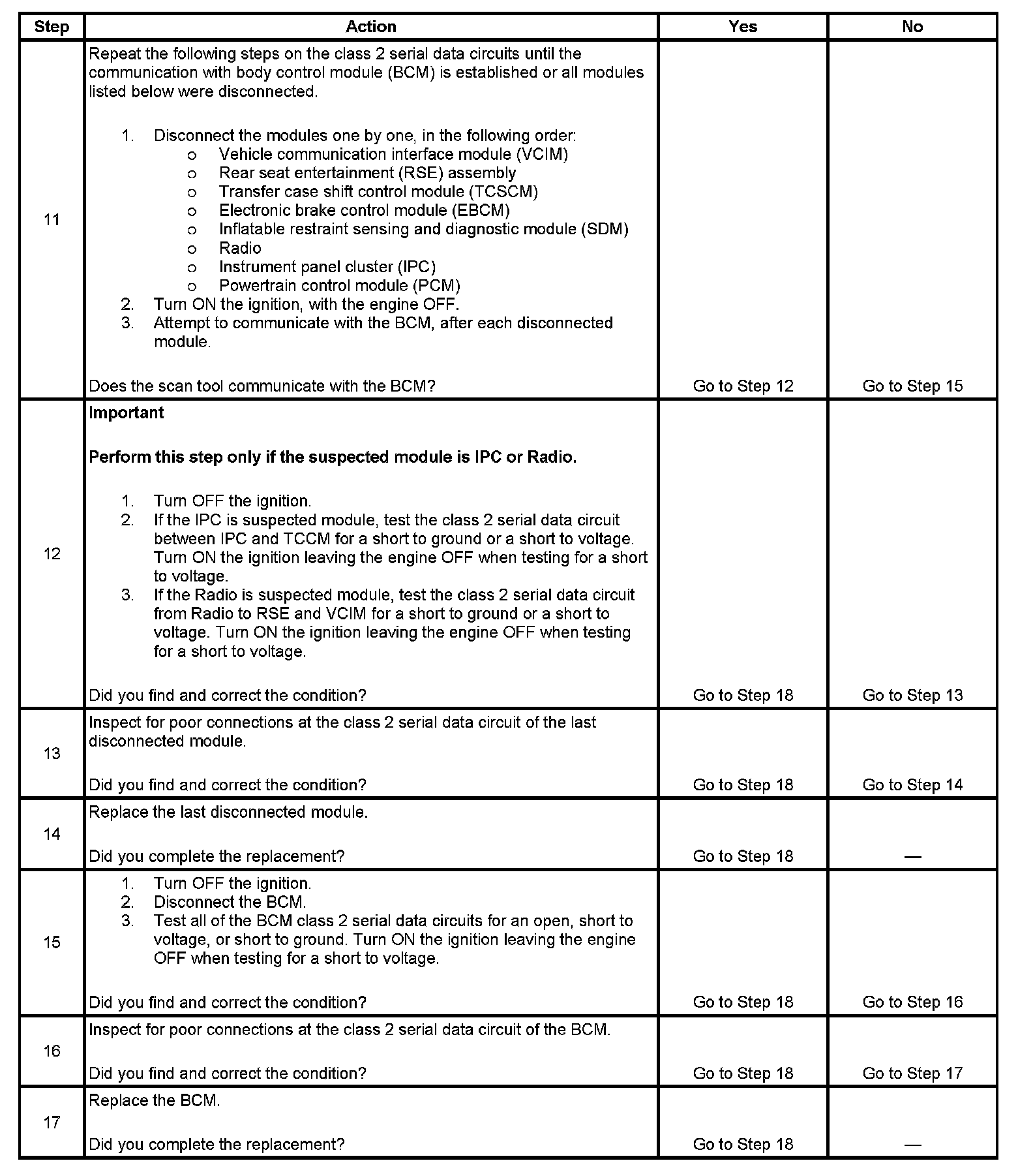 3. A partial malfunction in the class 2 serial data circuit uses a different procedure from a total malfunction of the class 2 serial data circuit. The following modules communicate on the class 2 serial data circuit: