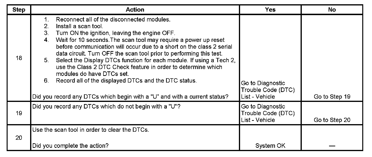 18. If there are no current DTCs that begin with a "U", the communication malfunction has been repaired.