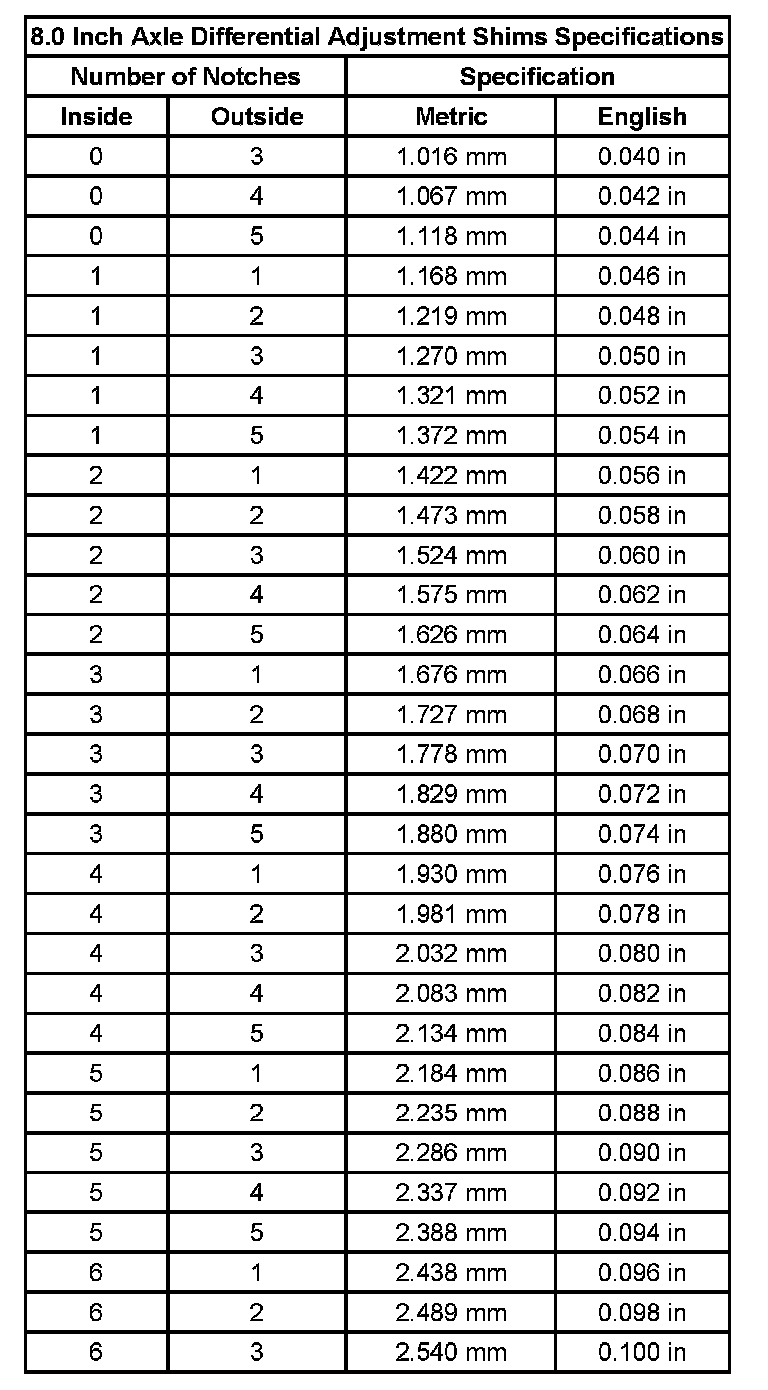 Differential Adjustment Shim Specifications