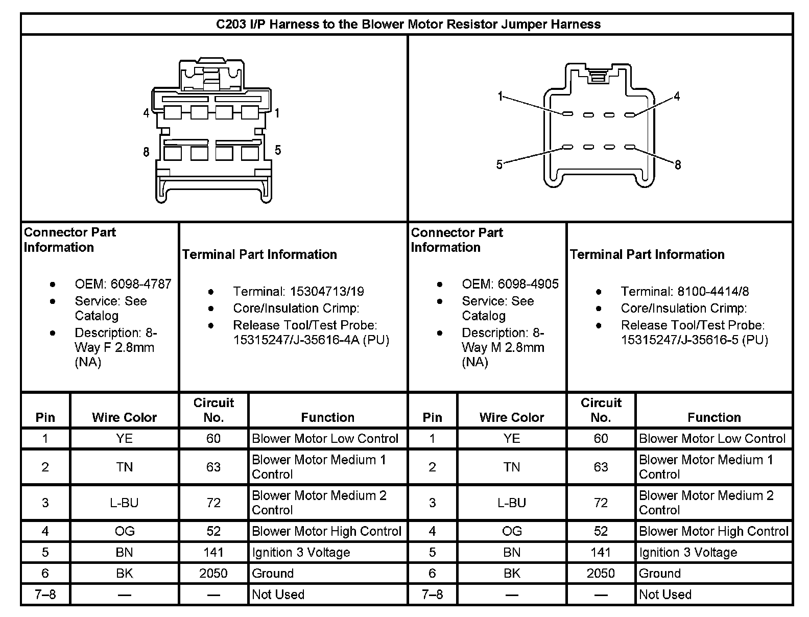 C203 I/P Harness To The Blower Motor Resistor Jumper Harness: