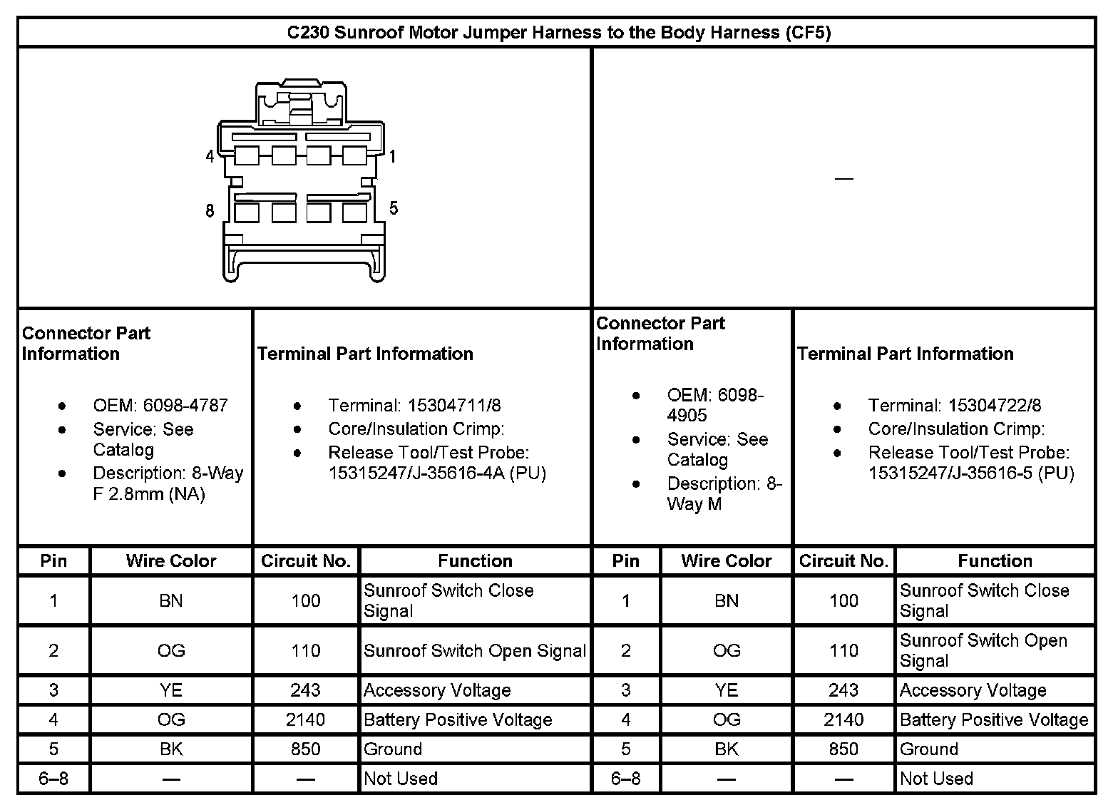 C230 Sunroof Motor Jumper Harness To The Body Harness(With RPO Code CF5):