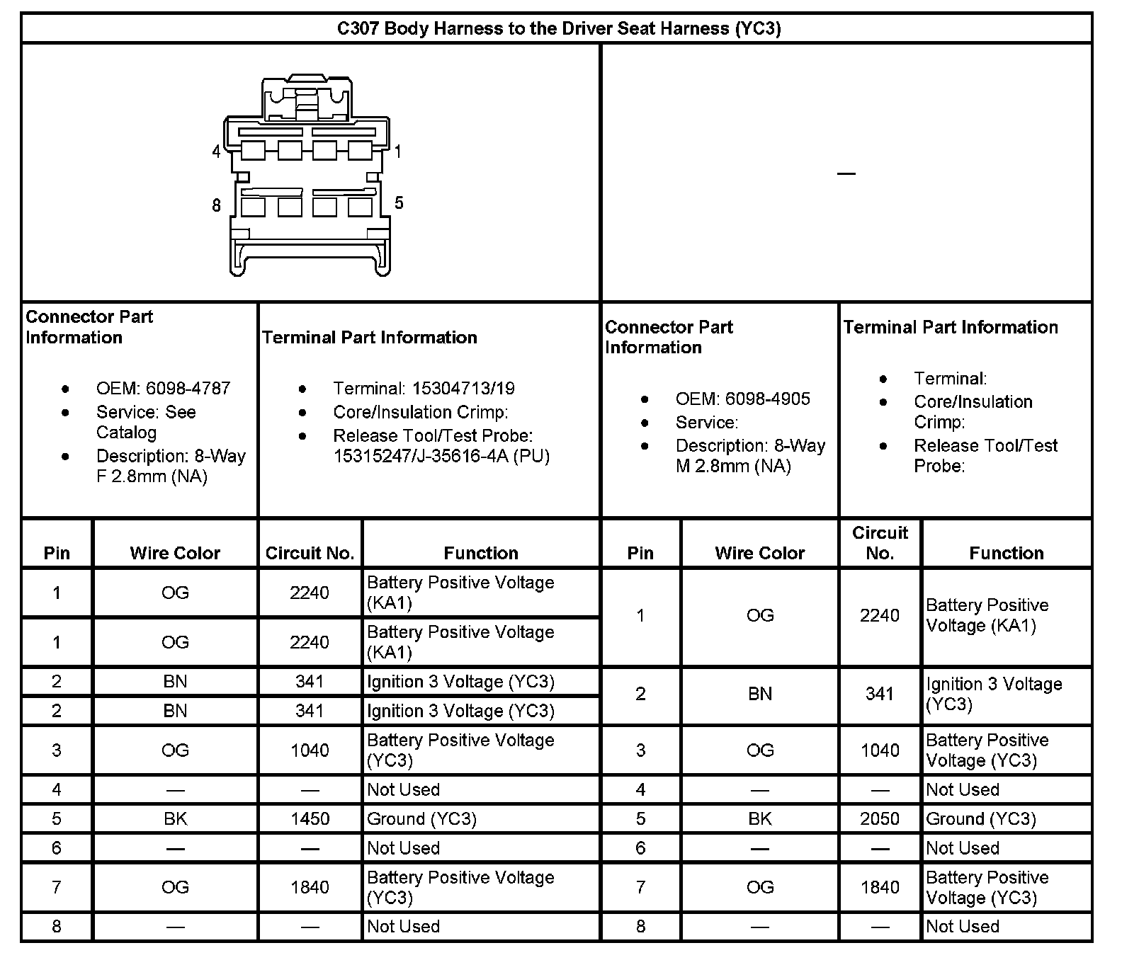 C307 Body Harness To The Driver Seat Harness (With RPO Code YC3):