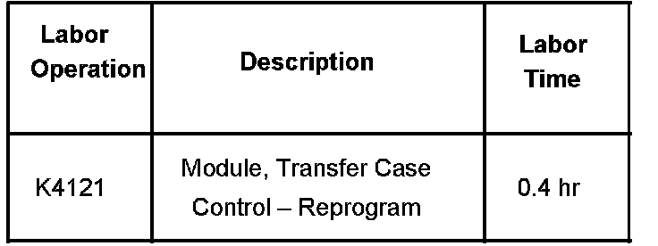 Service Four Wheel Drive (4WD) Light On, Diagnostic Trouble Codes (DTC) B0790, B2725, C0359 (Reprogram Transfer Case Control Module (TCCM))