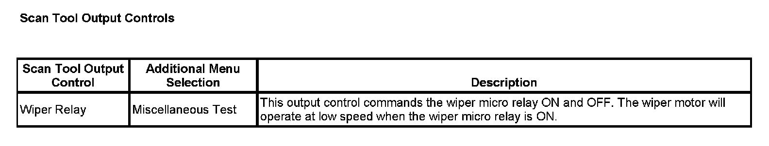 Scan Tool Ouput Controls: