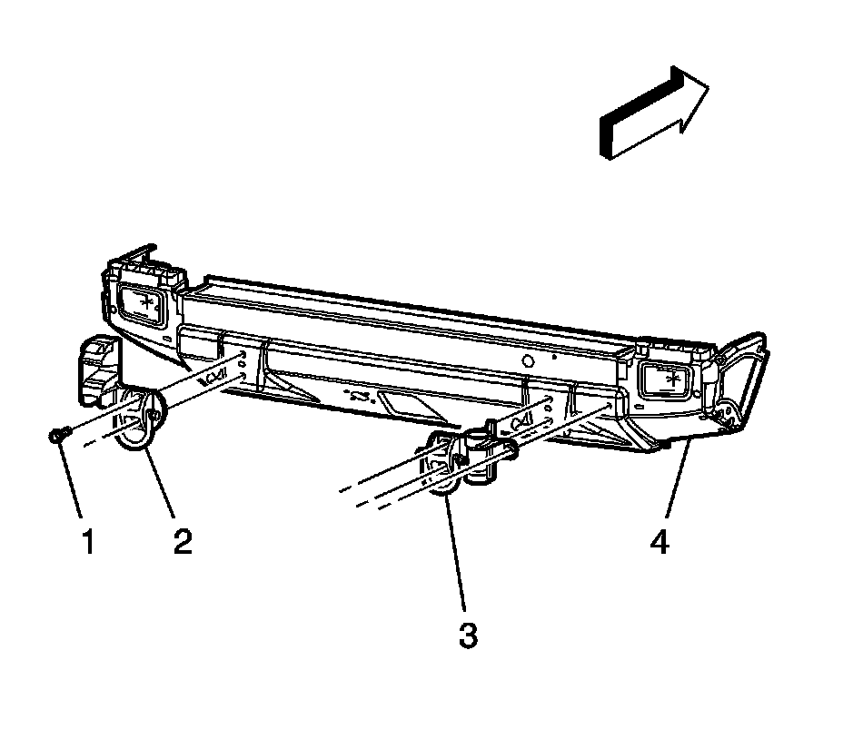 4.Remove the bolts holding the rear tow eyes (2, 3) to either the latch or hinge side of the spare tire carrier frame.