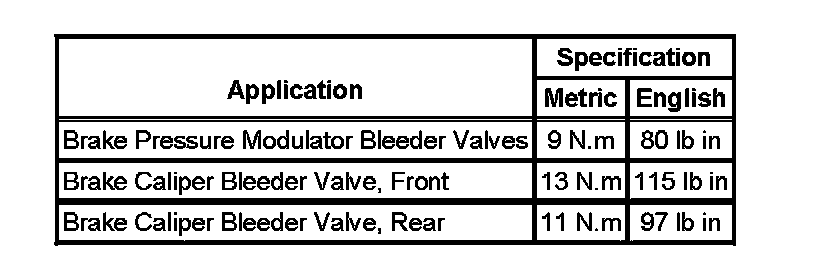 Brake Component Specifications