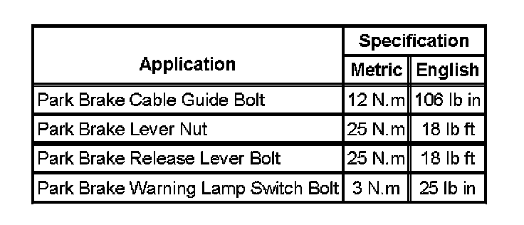 Parking Brake System: Specifications