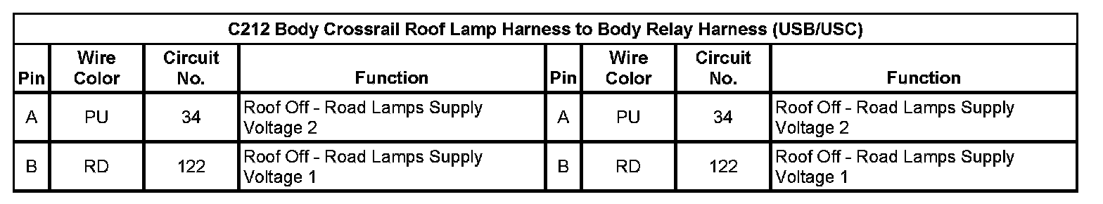 C212 Body Crossrail Roof Lamp Harness to Body Relay Harness (USB/USC)