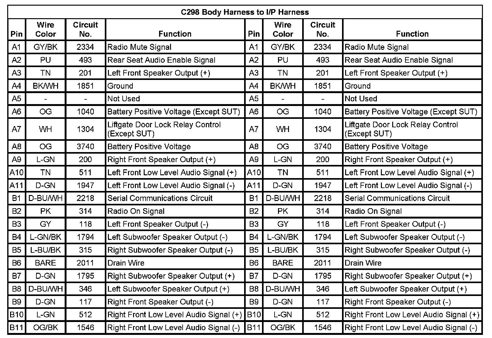 C298 Body Harness to I/P Harness