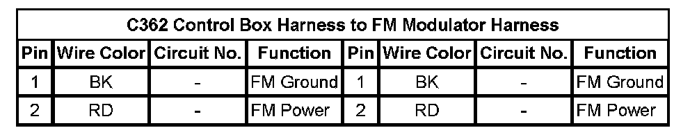 C362 Control Box Harness to FM Modulator Harness