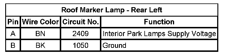 Roof Marker Lamp - Rear Left