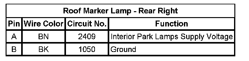 Roof Marker Lamp - Rear Right