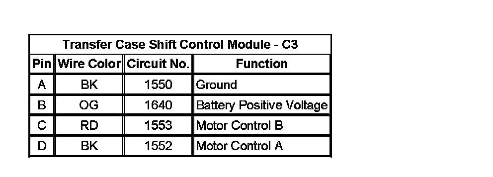 Transfer Case Control Connector End ViewsTransfer Case Shift Control Module - C1: