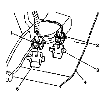 2. Remove the ambient air temperature sensor (3) from the vehicle (4).