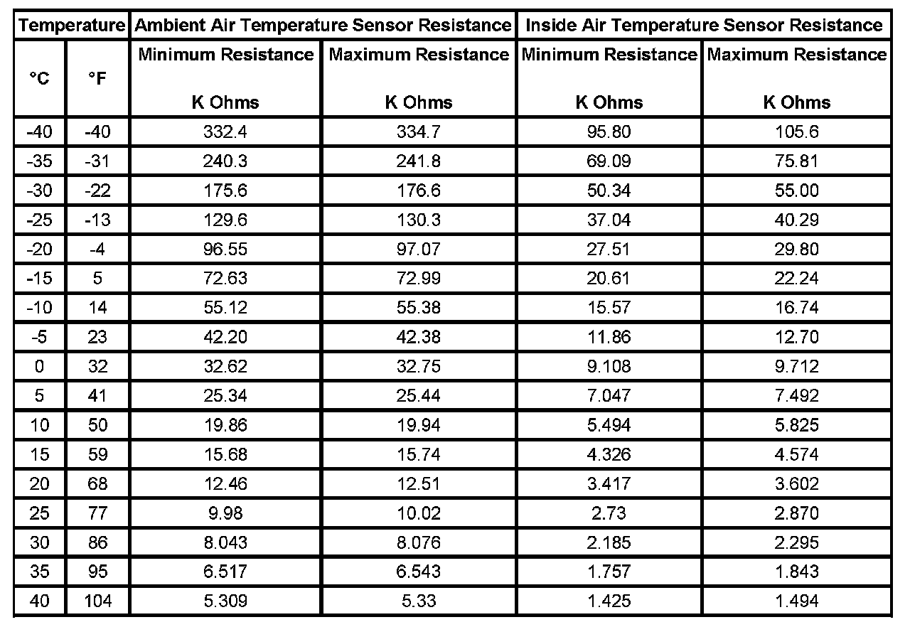 Sensor Resistance Table (Primary HVAC)