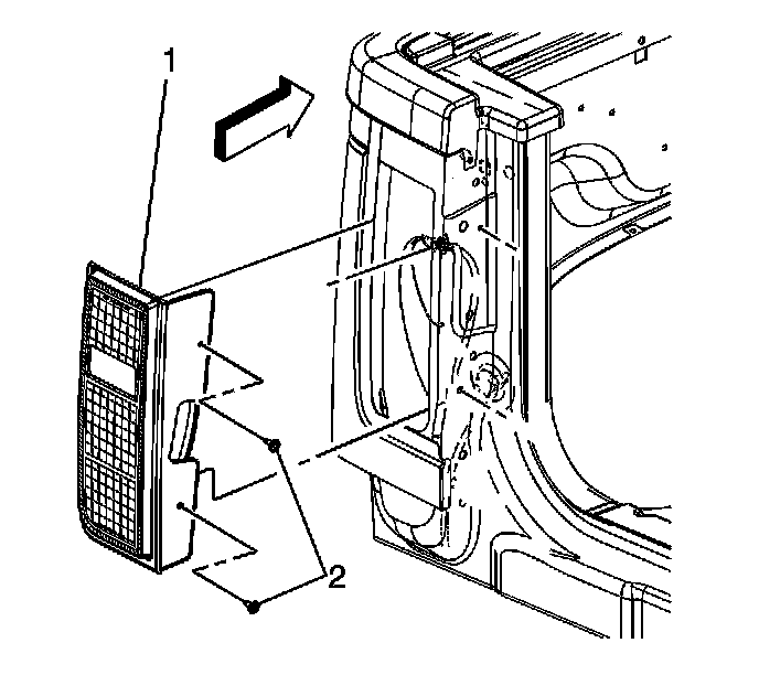 6. Secure the inboard side of the lamp (1) to the endgate opening.