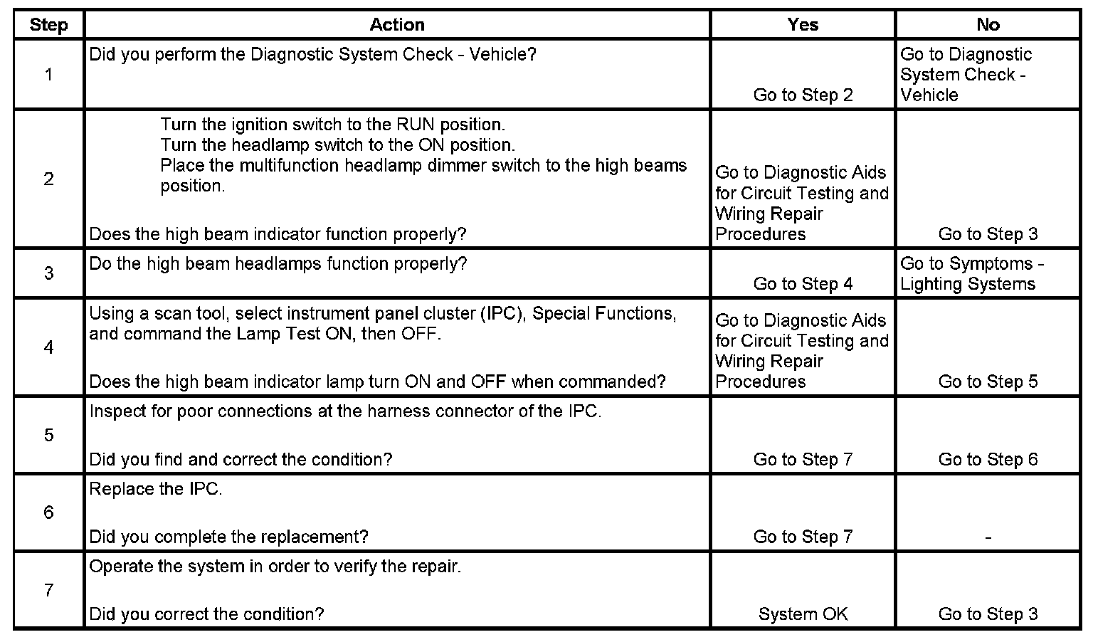 High Beam Indicator Inoperative