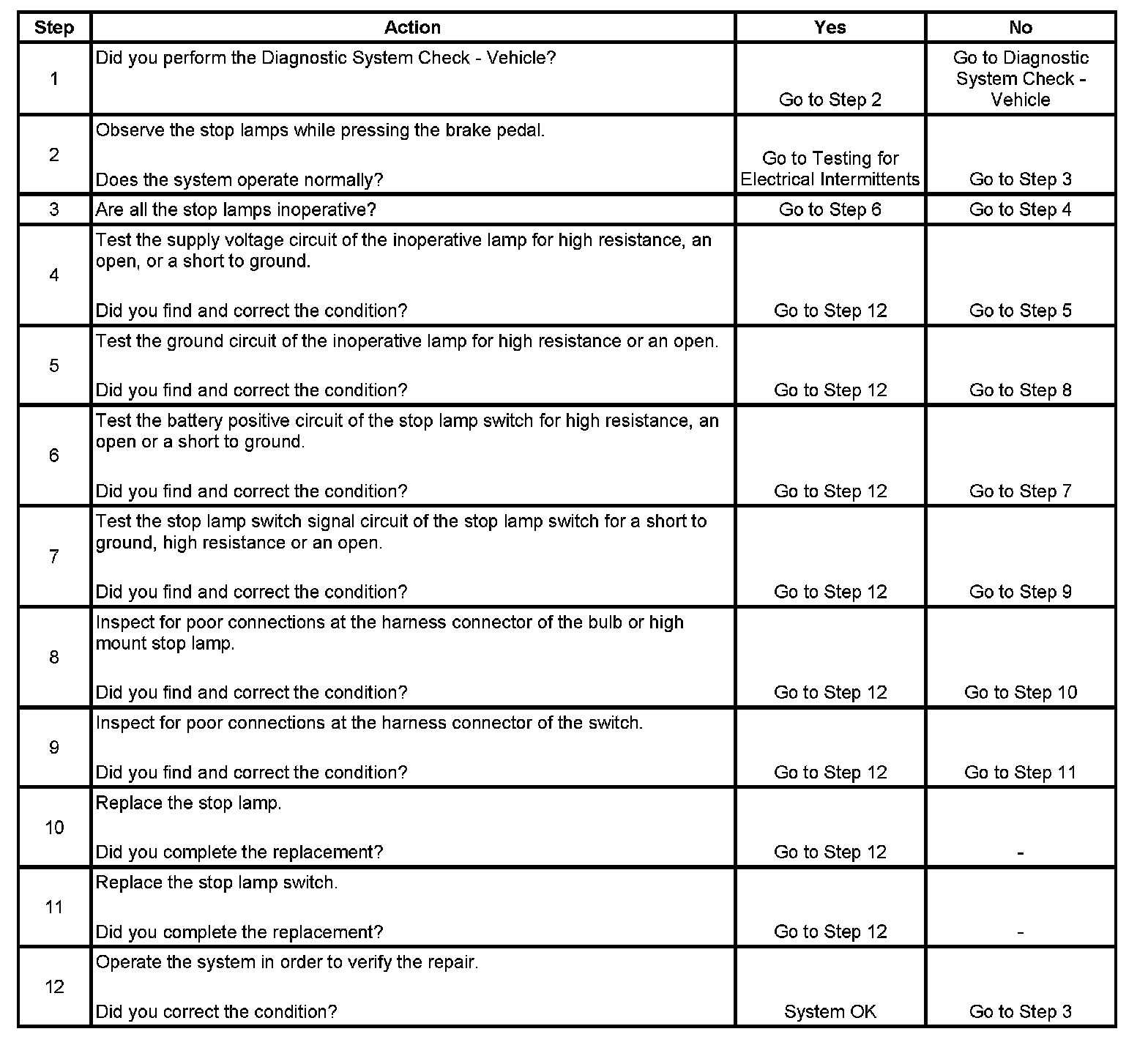 Stop Lamps Inoperative