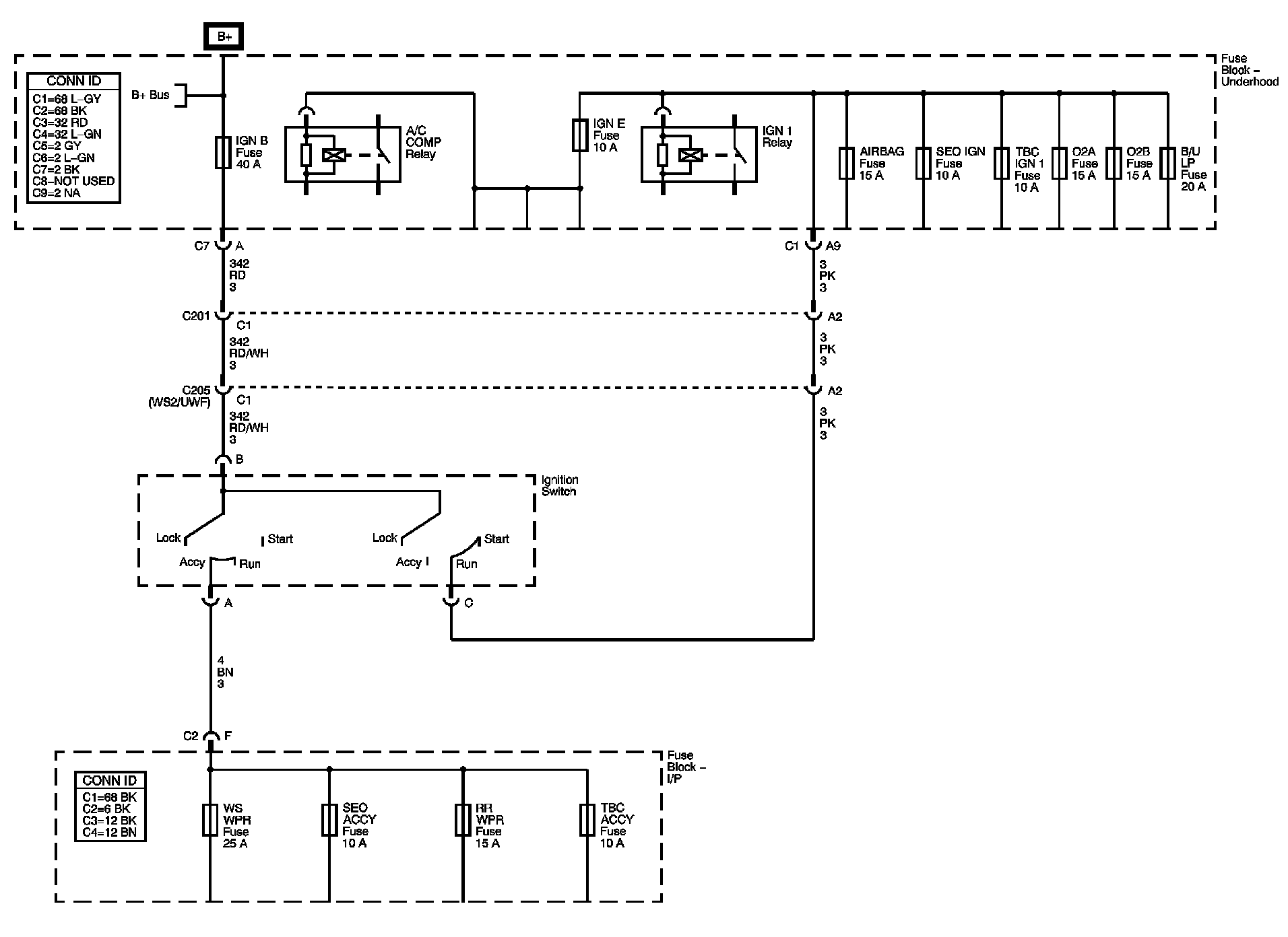 Ignition Switch - ACCY/RUN and RUN/START Bus Bars and IGN B Fuse
