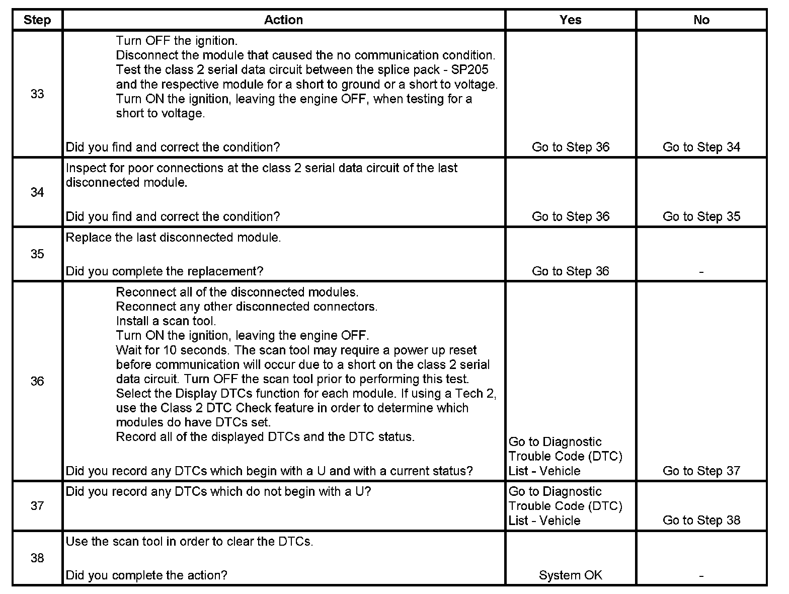 36. If there are no current DTCs that begin with a U, the communication malfunction has been repaired.
