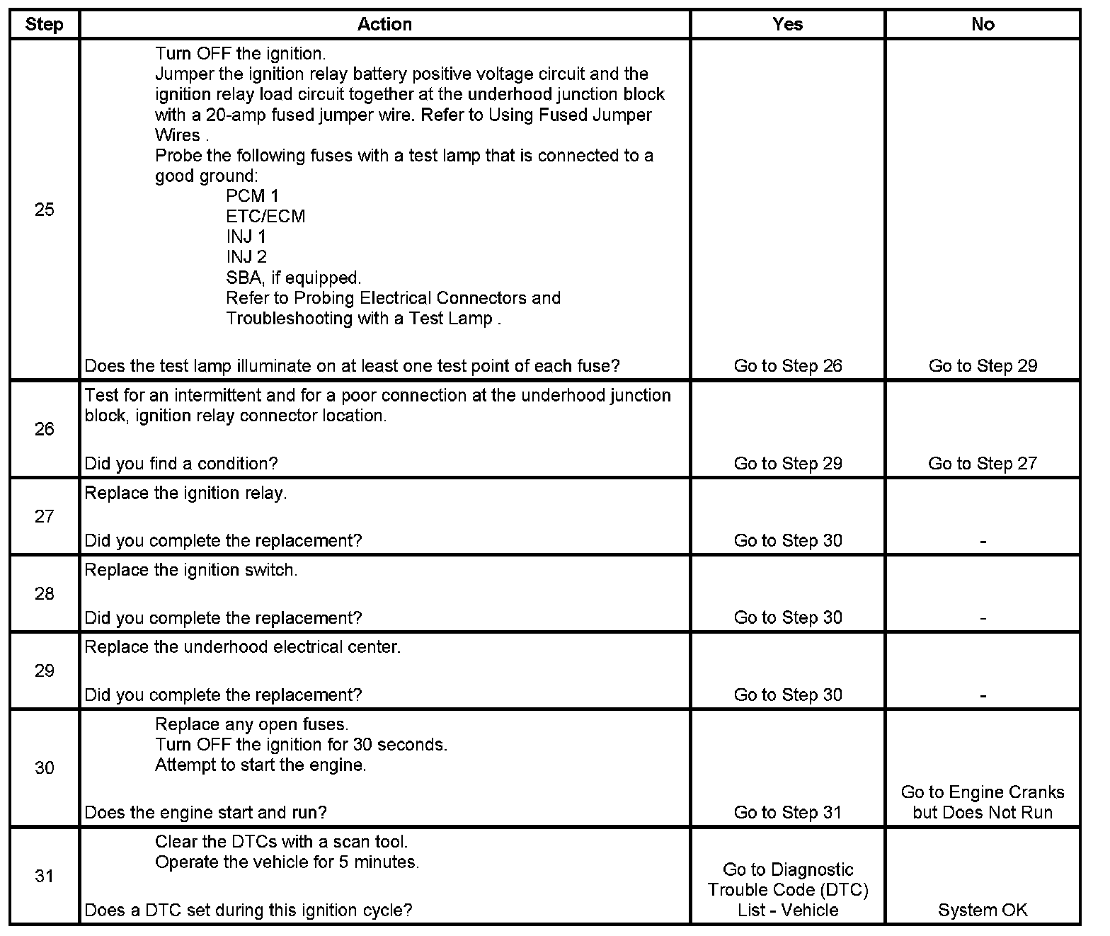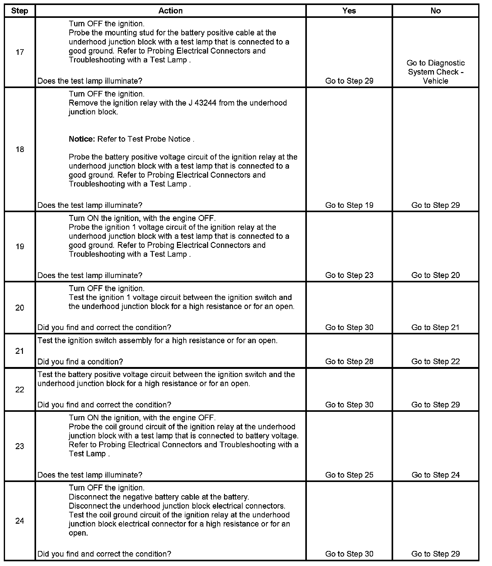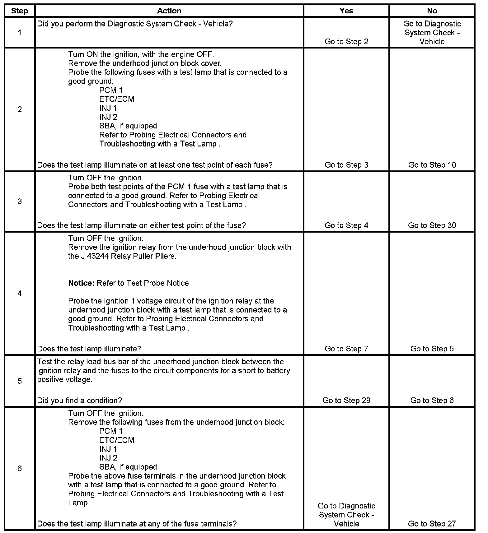 The ignition relay table assumes that the vehicle battery is fully charged. Refer to Battery Inspection/Test (Non-HP2). Component Tests and General Diagnostics