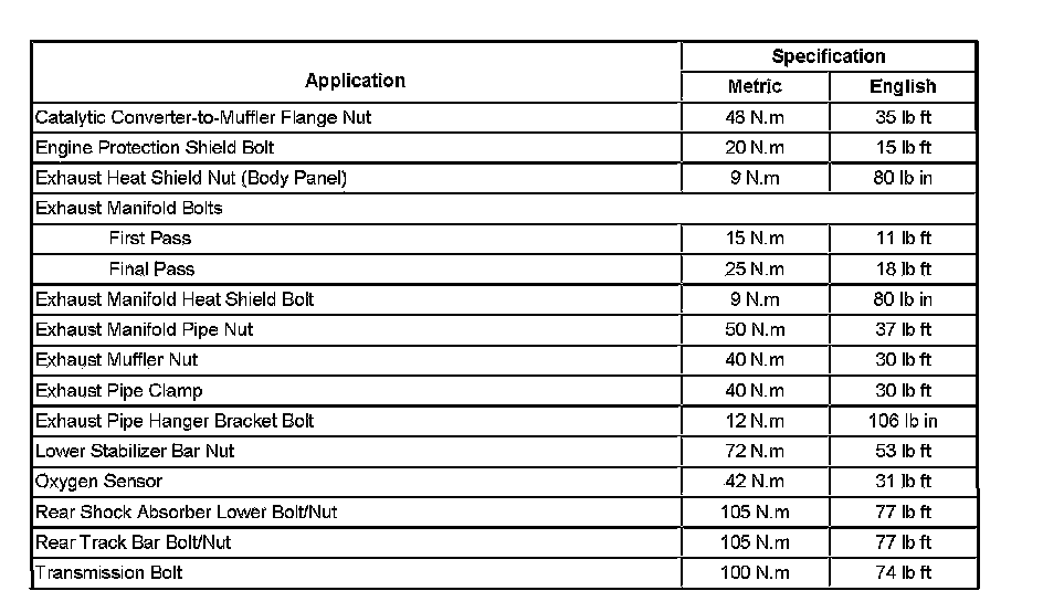 Fastener Tightening Specifications:
