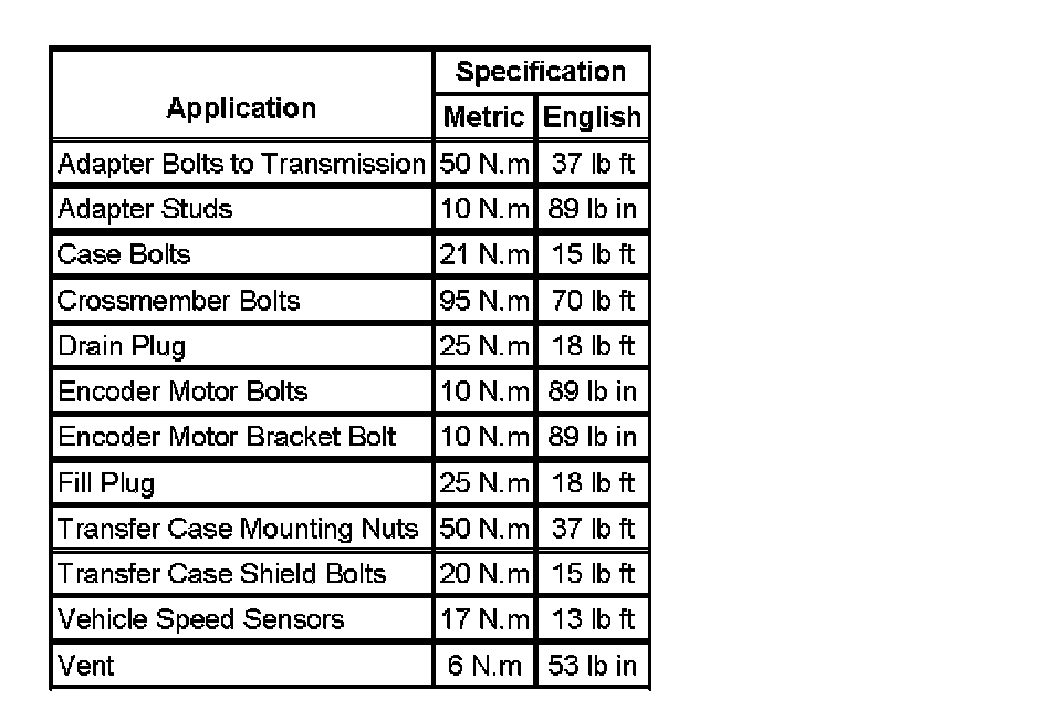 Fastener Tightening Specifications: