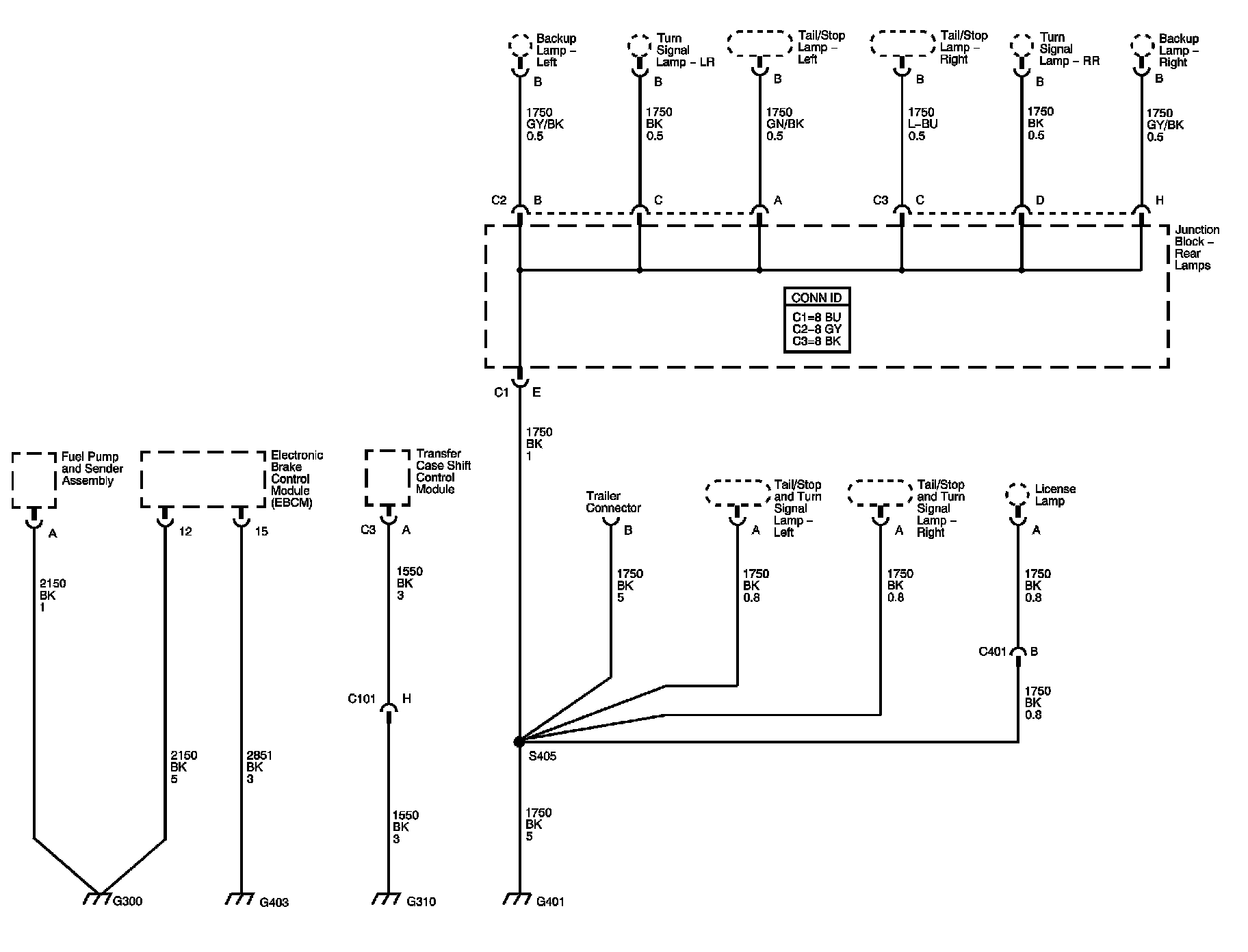 The locations for the Connectors, Grounds, Splices, and Grommets shown within these diagrams can be found via their numbers at Vehicle Locations.