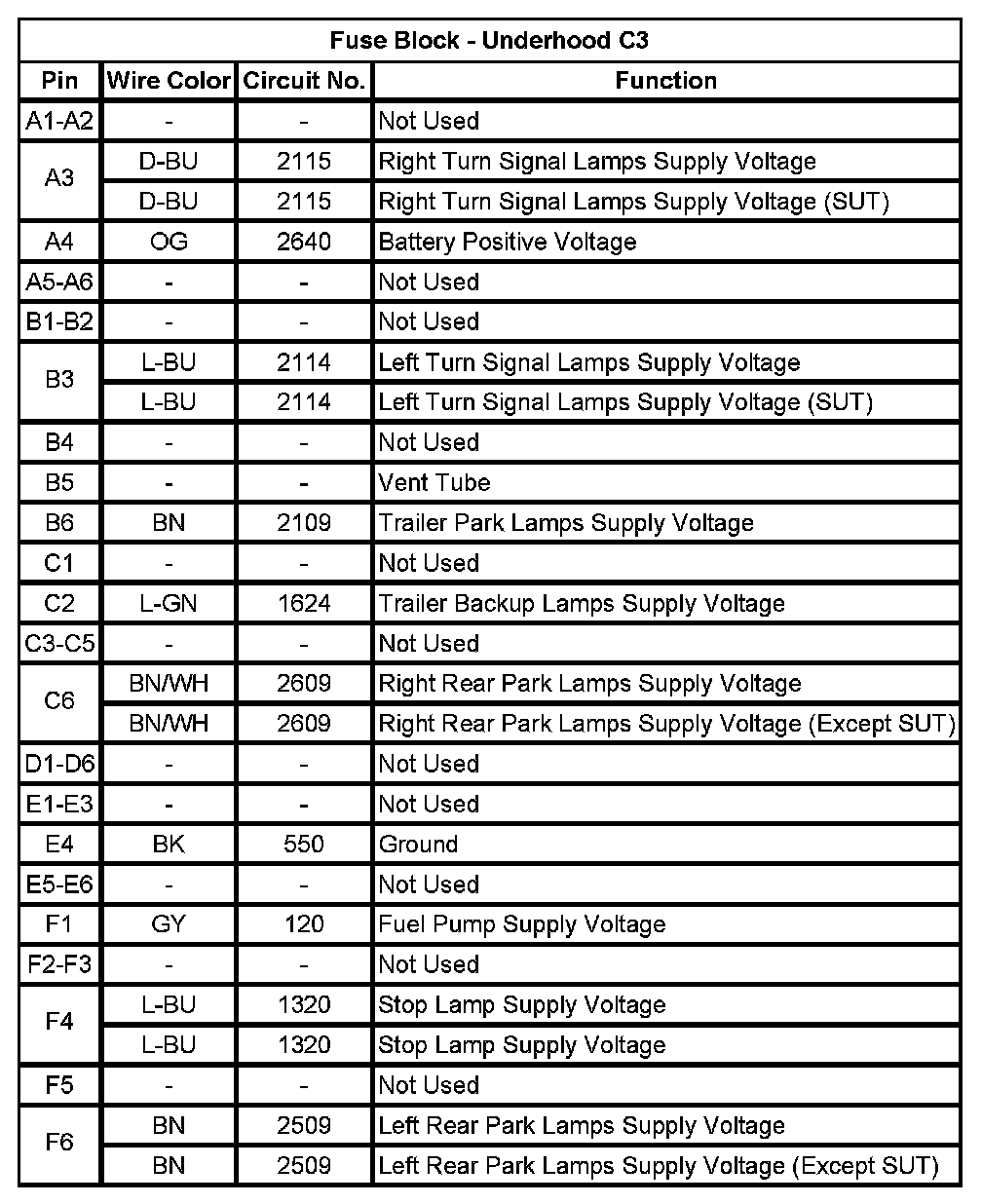 Fuse Block - Underhood C2 (Pin E1 To F12):