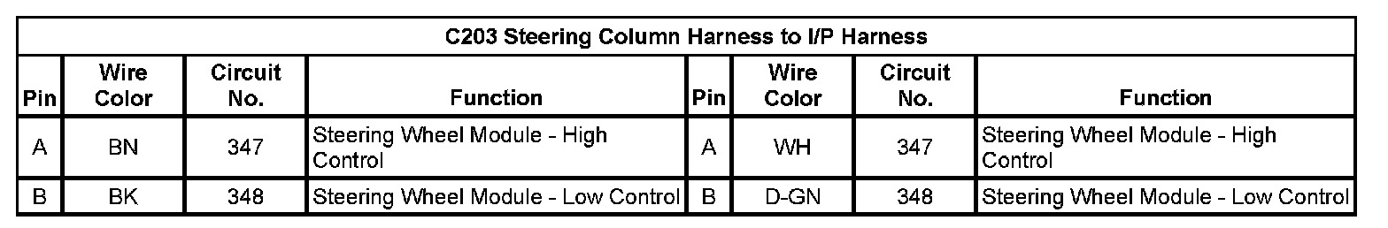 C203 Steering Column Harness to I/P Harness
