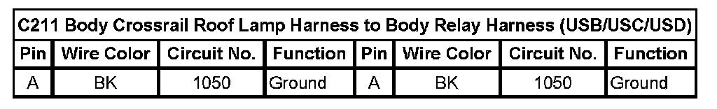 C211 Body Crossrail Roof Lamp Harness to Body Relay Harness (USB/USC/USD)