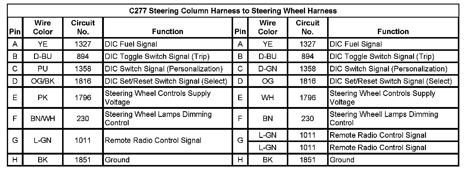 C277 Steering Column Harness to Steering Wheel Harness