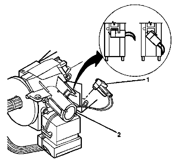 5. Gently pull the key alarm connector (2) out of the ignition lock cylinder case assembly (1).